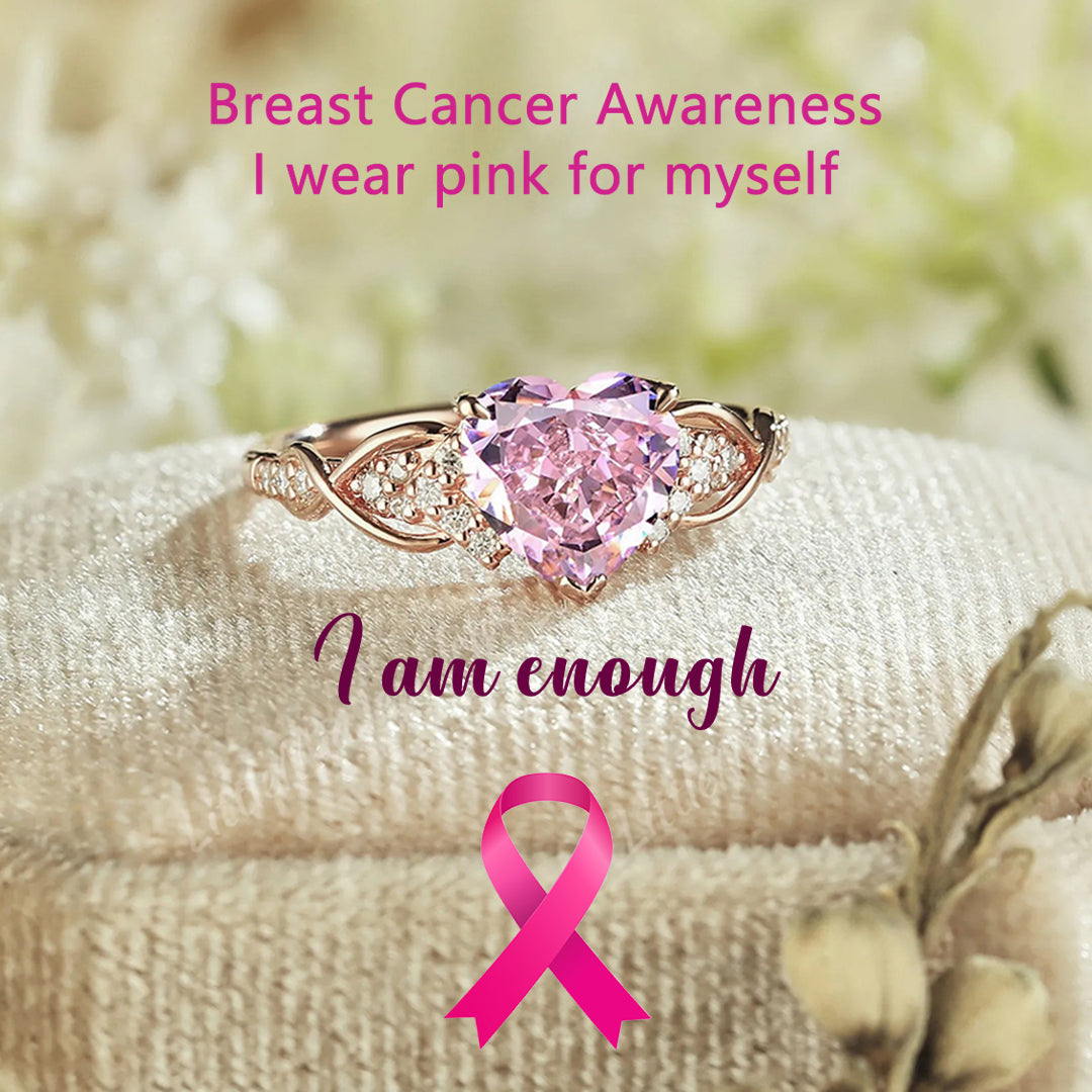 Bruk Pink Heart Diamond Ring som en daglig påminnelse om styrke og samhold i kampen mot brystkreft.